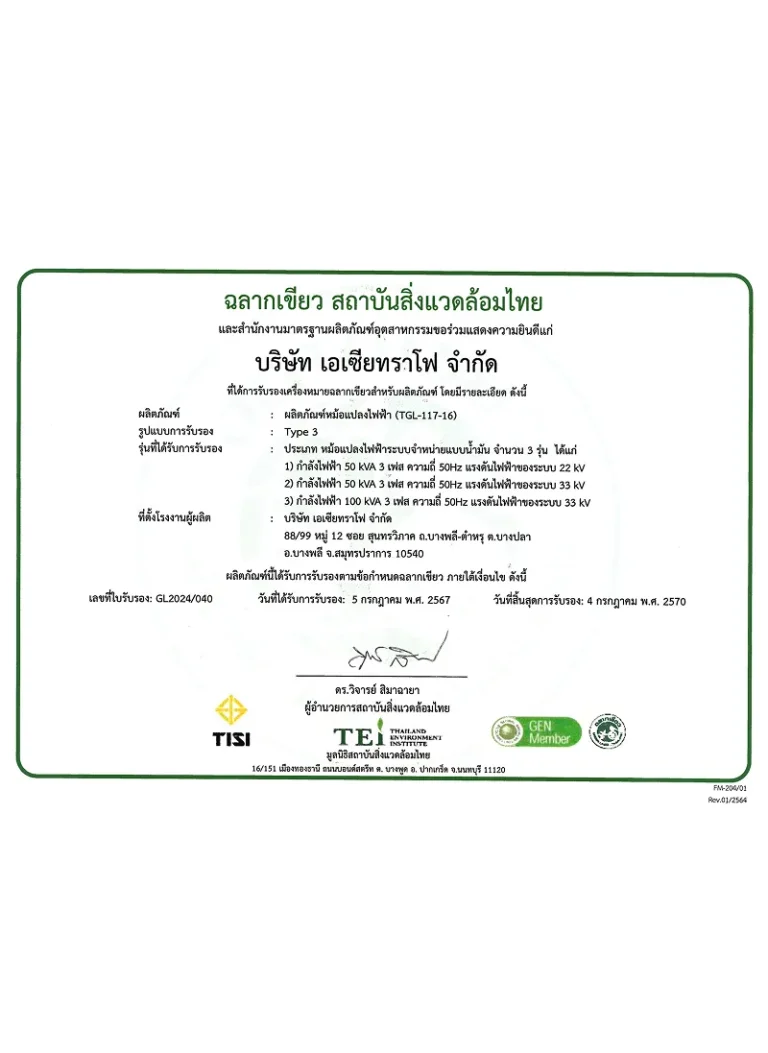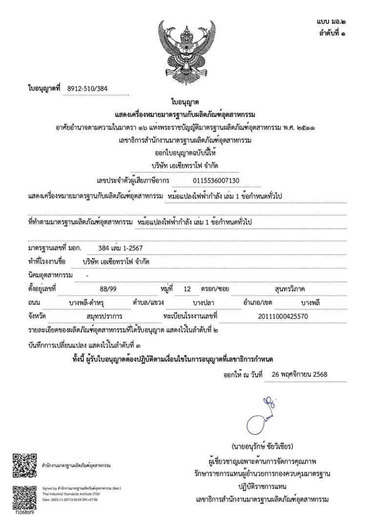 ดำเนินกิจการด้าน การออกแบบระบบวิศวกรรมไฟฟ้า จัดหา ก่อสร้าง ติดตั้ง และบริหารงานด้านวิศวกรรมไฟฟ้าอย่างครบวงจร รวมถึงงานก่อสร้างสถานี ไฟฟ้าย่อย ผลิตและจำหน่ายหม้อแปลงไฟฟ้าในนาม “ASIA TRAFO” ตั้งแต่ขนาด 30 – 10000 kVA.