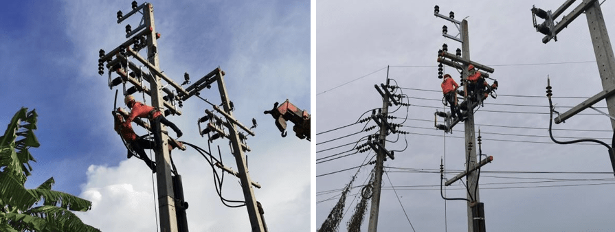 * งานพาดสายแรงสูง: ดำเนินการพาดสาย ดึงสาย และปรับความหย่อนของสาย (Sag) ให้ได้ตามมาตรฐานกำหนด